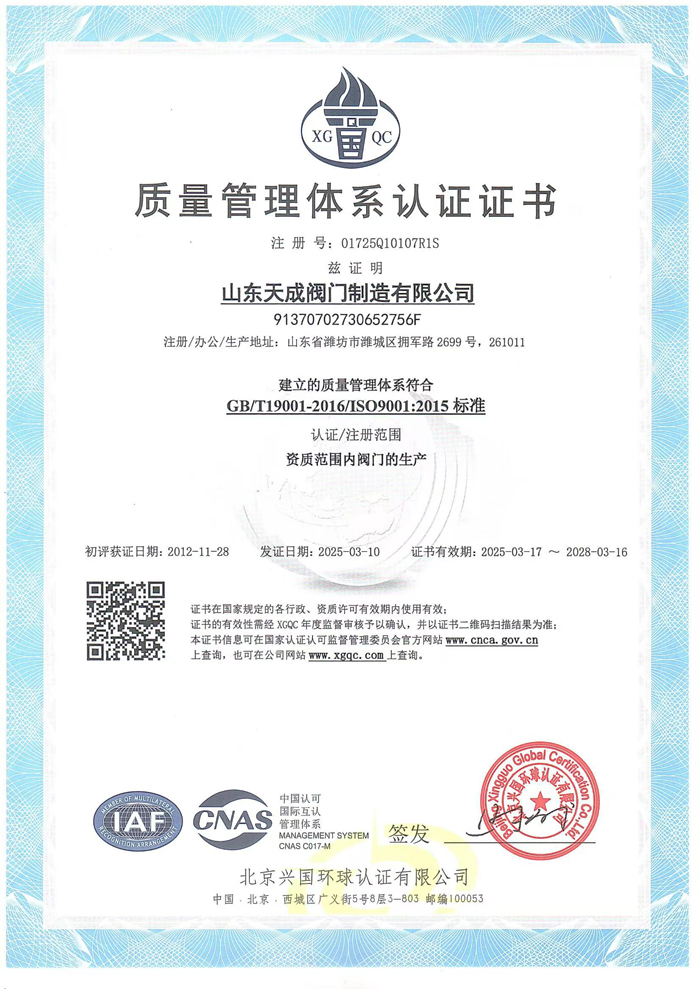 熱烈祝賀山東天成閥門制造有限中...